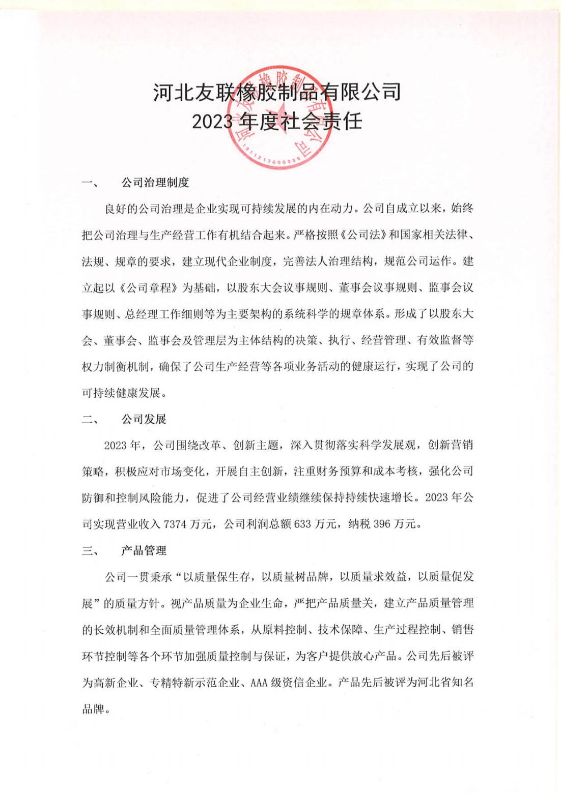 河北友聯(lián)橡膠制品有限公司2023年度社會責(zé)任報告